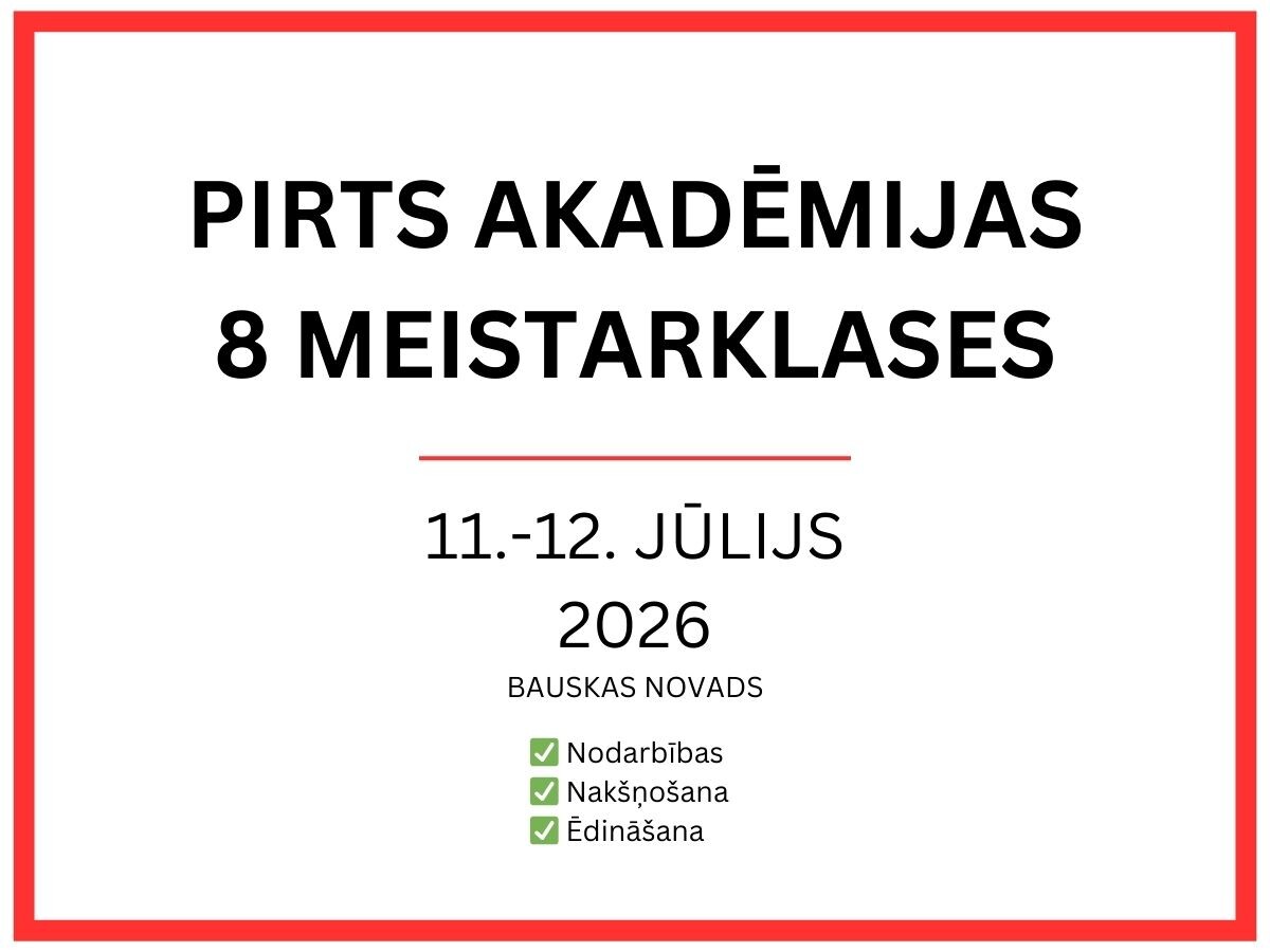 - → Iemācīsies būtiskāko par pirti 8 meistarklasēs - no pamatiem līdz padziļinātām tehnikām (VĒRTĪBA €210)
